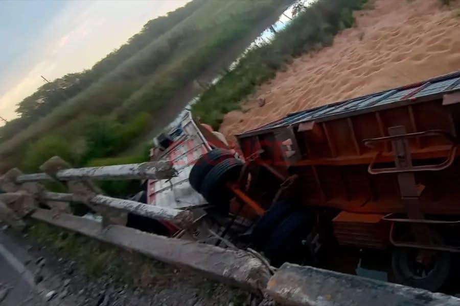 Impresionante choque entre un camión y una cosechadora sobre un puente en el kilómetro 198 de la Ruta 11