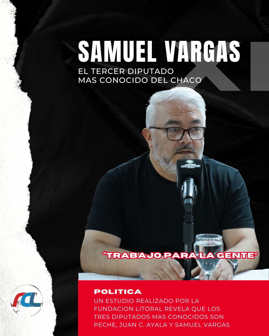 Samuel Vargas es el tercer diputado más conocido en la provincia del Chaco….. un estudio hecho por la Fundación Litoral revela que el primer diputado más conocido es Carim Peche, el segundo es Juan Carlos Ayala y el tercer Diputado es Samuel Vargas… qué paradoja.